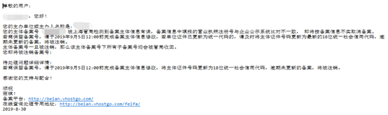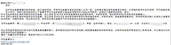 由于郵件、短信等通知的到達(dá)率、閱讀率的問(wèn)題,我司不承諾在清理之前都會(huì)通知到相關(guān)用戶,但我們會(huì)盡我們最大的努力來(lái)發(fā)送相關(guān)通知,一般會(huì)在取消接入前幾天發(fā)送郵件、短信、微信(如果有關(guān)注公眾號(hào)?關(guān)注備案公眾號(hào))。我們不提供我們發(fā)送過(guò)相關(guān)通知的“證據(jù)”和“日志”。所有備案用戶有義務(wù)保障自己備案資料的正確性,通信方式的準(zhǔn)確性,以及應(yīng)該在備案負(fù)責(zé)人變更后及時(shí)更新為最新的聯(lián)系人(主要是相關(guān)人員離職的情況下)。