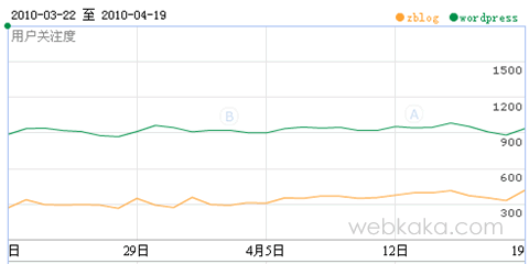 ????? 第二,現(xiàn)在越來(lái)越多的人甚至是初中生都建立了自己的獨(dú)立博客,這在前幾年是不可想象的,而在博客平臺(tái)的選用上,目前國(guó)內(nèi)用戶(hù)用得最多的無(wú)非就是用php開(kāi) 發(fā)的wordpress和用asp開(kāi)發(fā)的z-blog,而wordpress的用戶(hù)遠(yuǎn)比z-blog的用戶(hù)多,從百度指數(shù)的熱度可以看出來(lái)