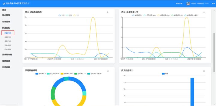 當(dāng)你想知道每個活碼添加的總?cè)藬?shù)時,還可以通過統(tǒng)計分析模塊的活碼分析進行查看,在這里會對不同活碼的人數(shù)、百分比、添加客戶的性別等進行分析,查看起來一目了然,更加方便來進行統(tǒng)計分析。