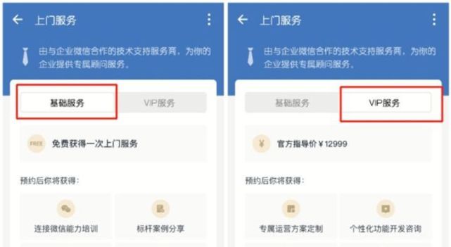 在這里可以明確的告訴大家,上門服務(wù)是需要收費的,當(dāng)然,公司在開通企業(yè)微信之后都會有一次免費的基礎(chǔ)上門服務(wù),如果公司使用了這次服務(wù)之后再想使用上門服務(wù)的話,就必須要進(jìn)行付費了。一般來說VIP上門服務(wù)的收取費用設(shè)置在12999元/次。如果你的企業(yè)想預(yù)約上門服務(wù),也可以查看官網(wǎng)聯(lián)系我們,我們會提供一些專業(yè)知識的解答!