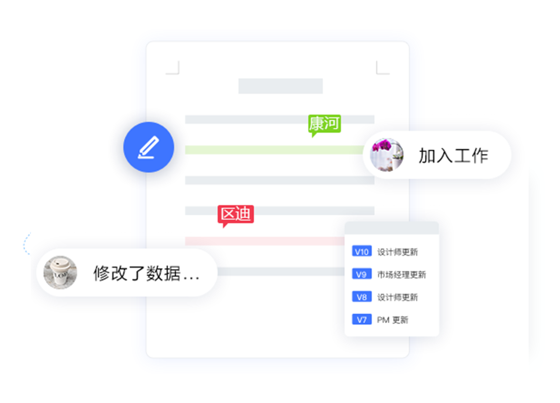 協(xié)同編輯、劃詞標(biāo)注、即寫(xiě)即存、歷史版本
